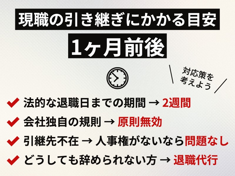 現職の引き継ぎにかかる目安は1ヶ月前後