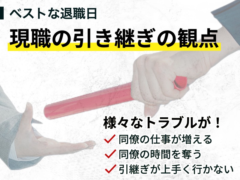 現職の引き継ぎの観点から退職日を決めましょう。