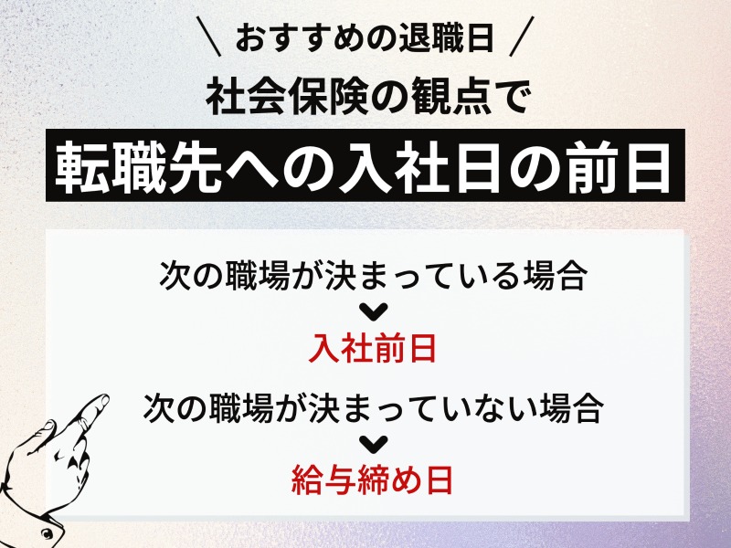 - 次の職場が決まっている場合:次の転職先の入社前日がおすすめ