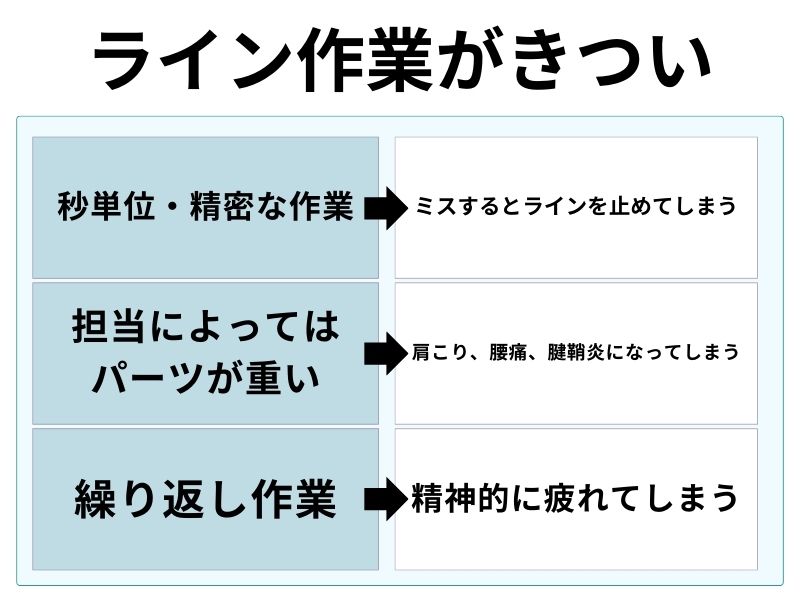 高速のラインでミスをしないように常に集中せねばならず、精神的に疲れてしまいます。