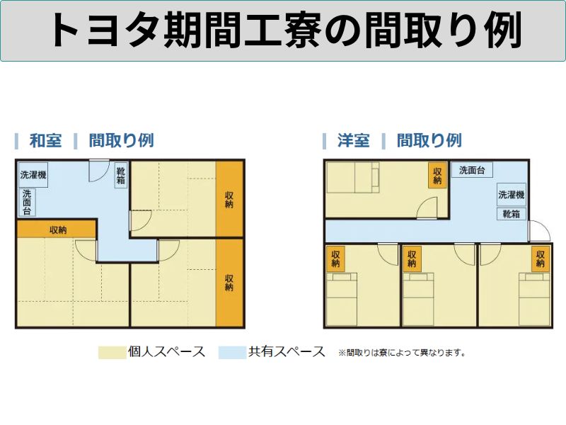 完全個室タイプも存在しますが、やはり社員優先や専用だったりと、期間工に回ってくることはなさそうです。